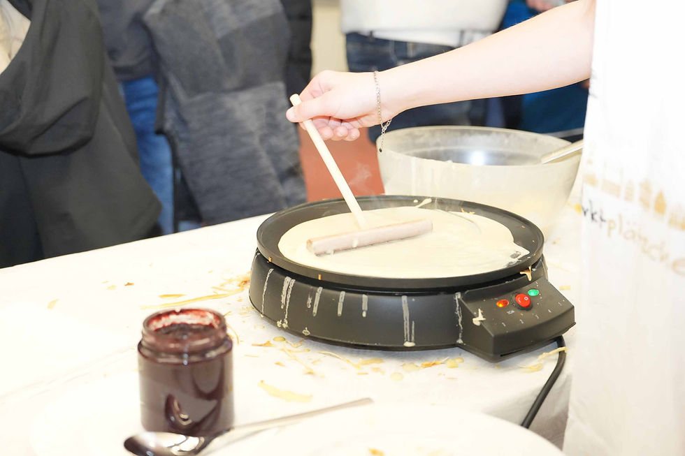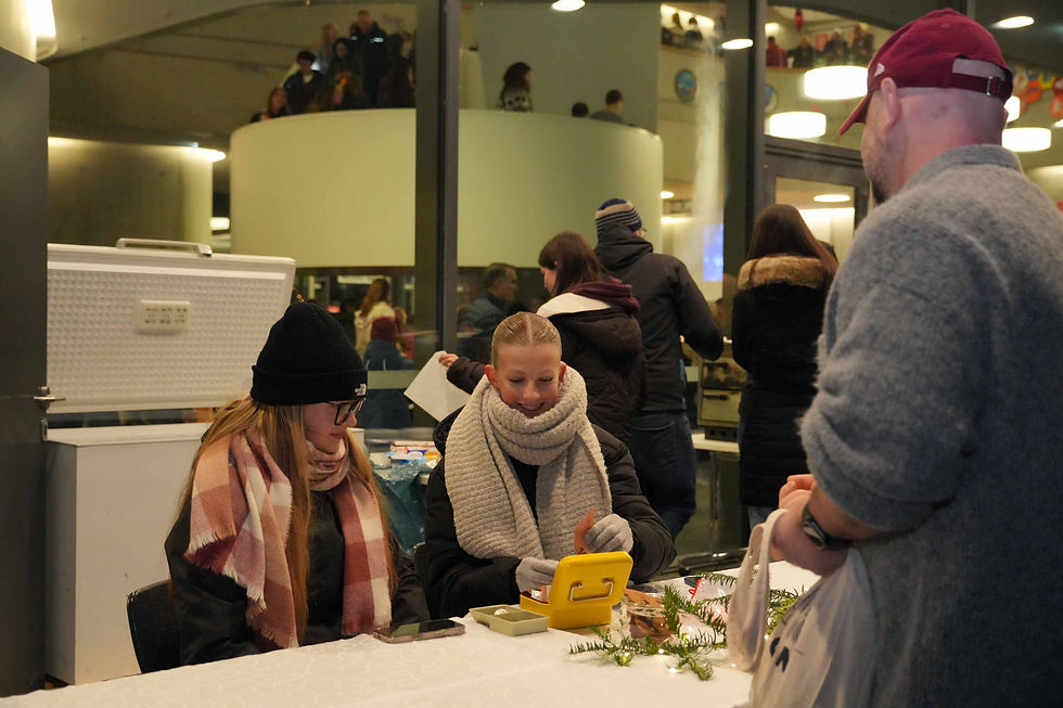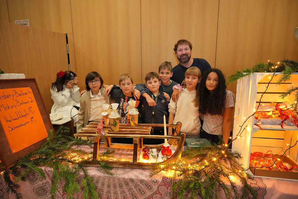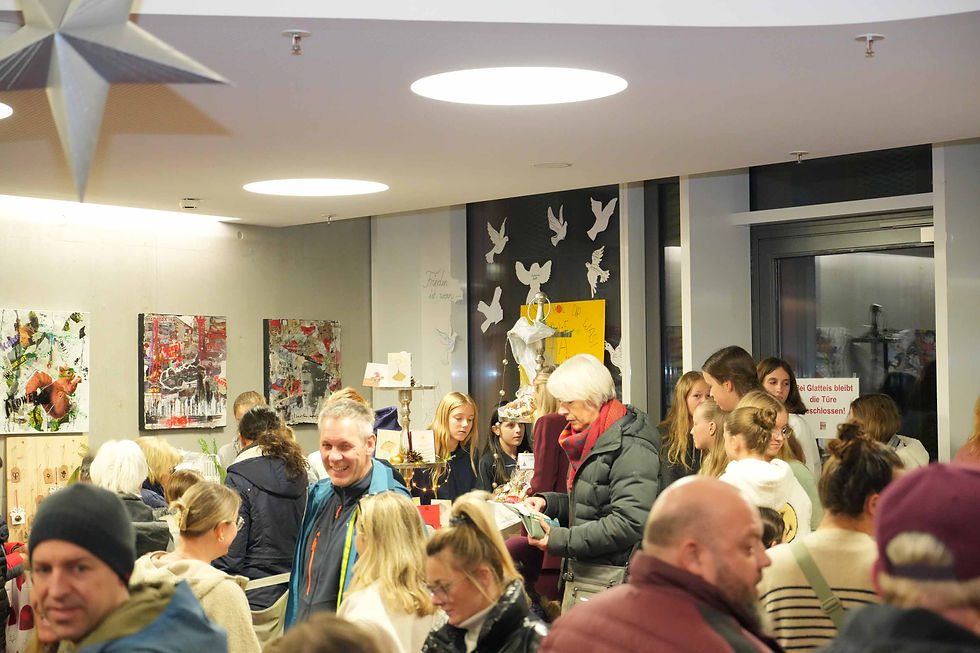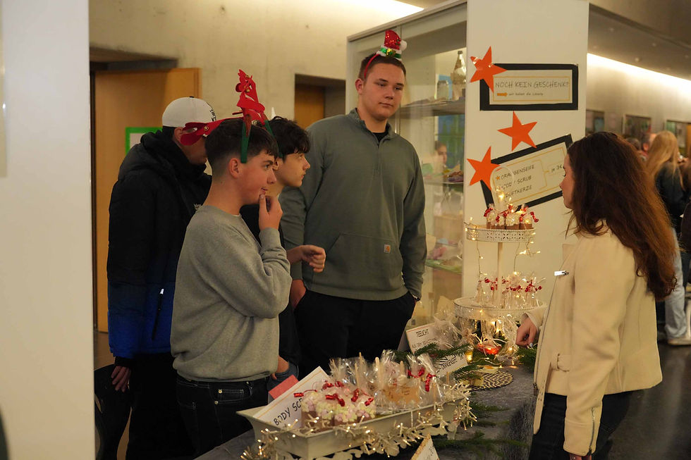 Auf mehreren Etagen boten Schülerinnen und Schüler sowie Eltern mit großem Einsatz Selbstgemachtes an: Marmeladen, Weihnachtsgebäck, Holz- und Betonarbeiten, Dekorationen und kleine Geschenkideen. Internationale Spezialitäten, Flammkuchen, Waffeln und das „Dolli-Café“ sorgten für eine warme, einladende Atmosphäre. Für Kinder gab es Bastelangebote, Kinderschminken und eine Tombola.