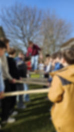 Einen weiteren Nachmittag gestaltete die Schulsozialarbeit mit Frau Ritthaler. Hier gab es verschiedenen Team-Building-Aktivitäten, welche sowohl die Achtsamkeit in der Natur als auch das Erreichen eines gemeinsamen Zieles stärkten. So halfen diese Bausteine den drei Klassen, sich besser kennenzulernen und Vertrauen zueinander aufzubauen.